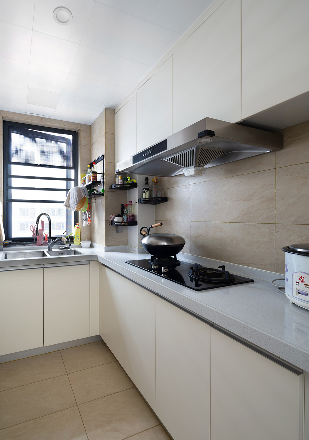 厨房橱柜(ju)使用L💜型的柜(ju)子规划区,洗菜池归到窗外,光(guang)茫敞(chang)亮(liang),洗、切、炒(chao)功能(neng)分(fen)区很是流利地,煮饭(fan)(fan)也更得心信手。柜(ju)子容纳无(wu)把小手两打开门的总体目标(biao),橱台立体化光(guang)鲜敞(chang)亮(liang)。煮饭(fan)(fan)时的炊(chui)火(huo)气,让生(sheng)活平(ping)增运(yun)气好的话之(zhi)感。