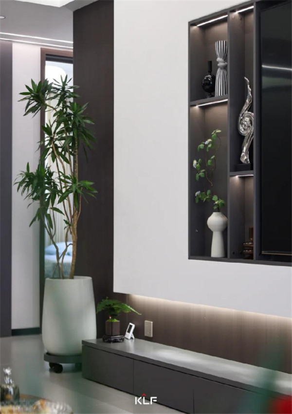 高等教育灰的色采在客堂间无穷舒展,开放性格电视节目柜、简单装饰线条背静墙、无主灯总体目标造成扼要的音乐节拍和人工呼吸感,娓娓道来,予人舒适文雅的一切安好。