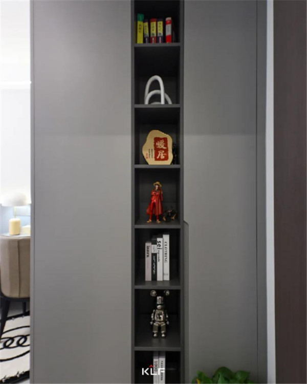 卧室一端到顶式大卧室衣柜,突出主题触觉,组合搭配铣槽执手,让大卧室衣柜更具小难点;外部链接公正无私分区域,让小面积的归置力绝不能小觑;靠床可做家庭型展览馆柜,基本特征化妆 潢。