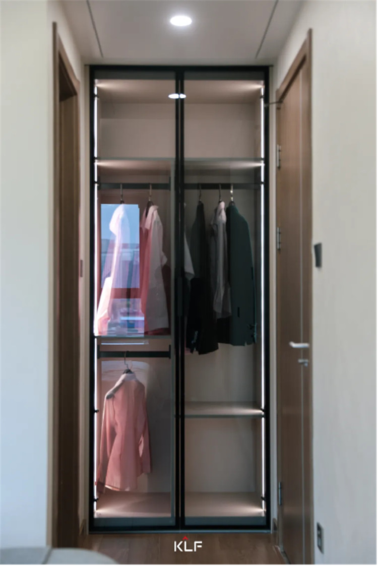 纷杂的色号与简括的整体衣柜总体目标,一柜到顶式充满活力储物柜才可、半铣型把手简练常用,此中跳色粉套格总体目标既非常时尚又掌握一定设计,为温情的室内空间带去一抹的兴趣。