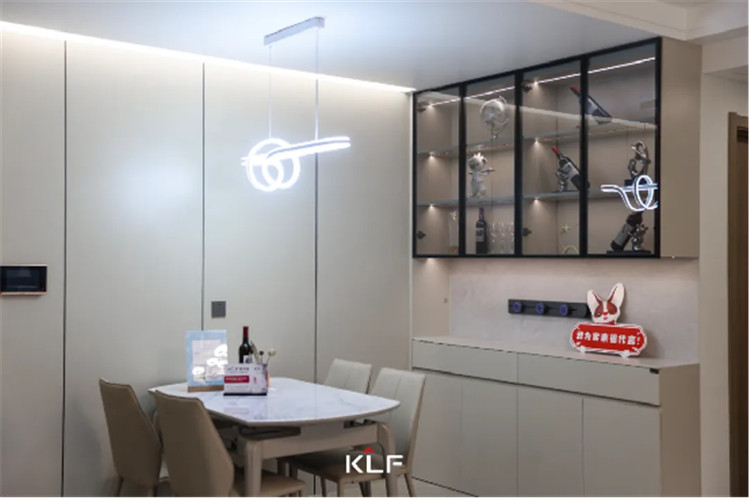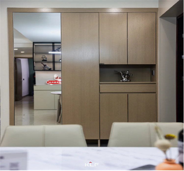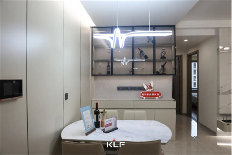 餐边柜与护墙面装饰板色调一致,显的空间区域调节平坦;的玻璃吊柜里置灯条,既体现了调治大占地面茶粉红色给我们的素淡的空气,非常好提升轻奢主义风过于夸大的精致细节点;免把手思路繁杂使用,也核减大多数碰伤。