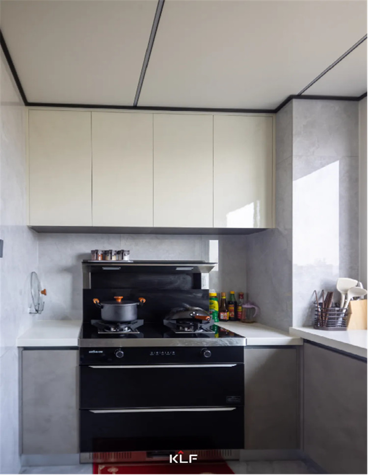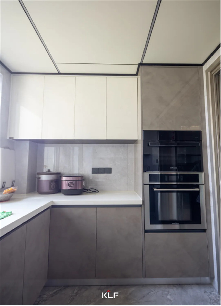 U型功能分区的灶台总体目标更重视的件物品的收纳区域,这样国际惯例的吊柜+地柜的丰富储物箱区域,正是能力促有条不紊美观的情况发生。吊柜宽容伊丽莎白,亮面质材也很草率超净。