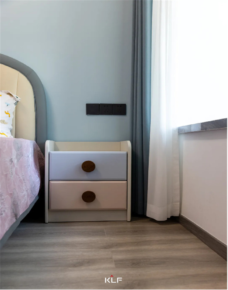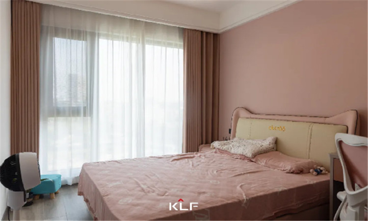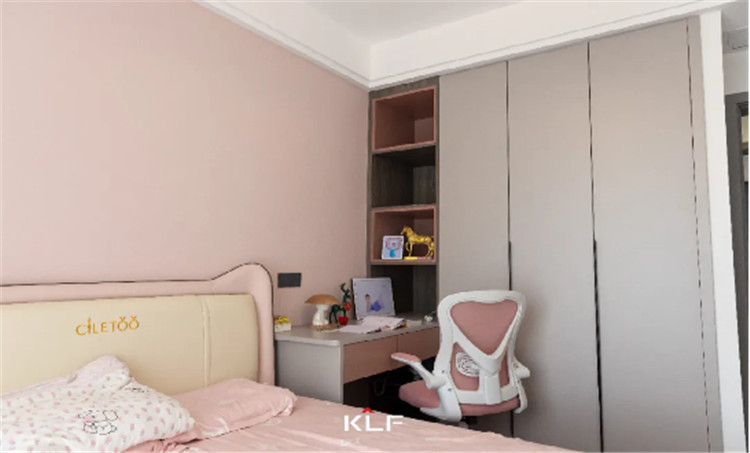 在宝贝儿子房的构想上,业主以淡粉色形成蓝颜色调铸就了两间卧房。在卧房中,除常见维持生计的就寝区,在柜子构想中干预了书架的稀土元素,让柜子与书架整体化构想,放开格可做书厨调控,全队形成又节流前景。