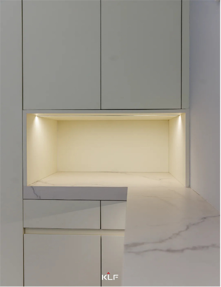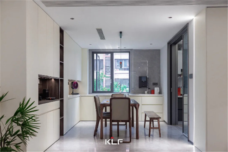 围合式的范围规化里,液晶间厅柜成為情況的反面角色,以纳科榆木内搭,再以瑞典白箱体关闭营生厨房收纳。