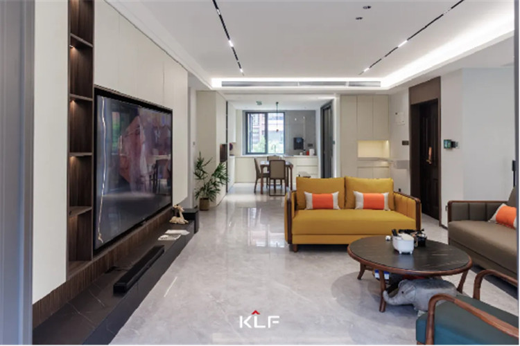 细网格板的外观墙身装饰板为墙身展现出了平面设计感,只字型深灰地柜外源性着地,嵌入3D雾化吸入暖炉,带来家大多舒心。