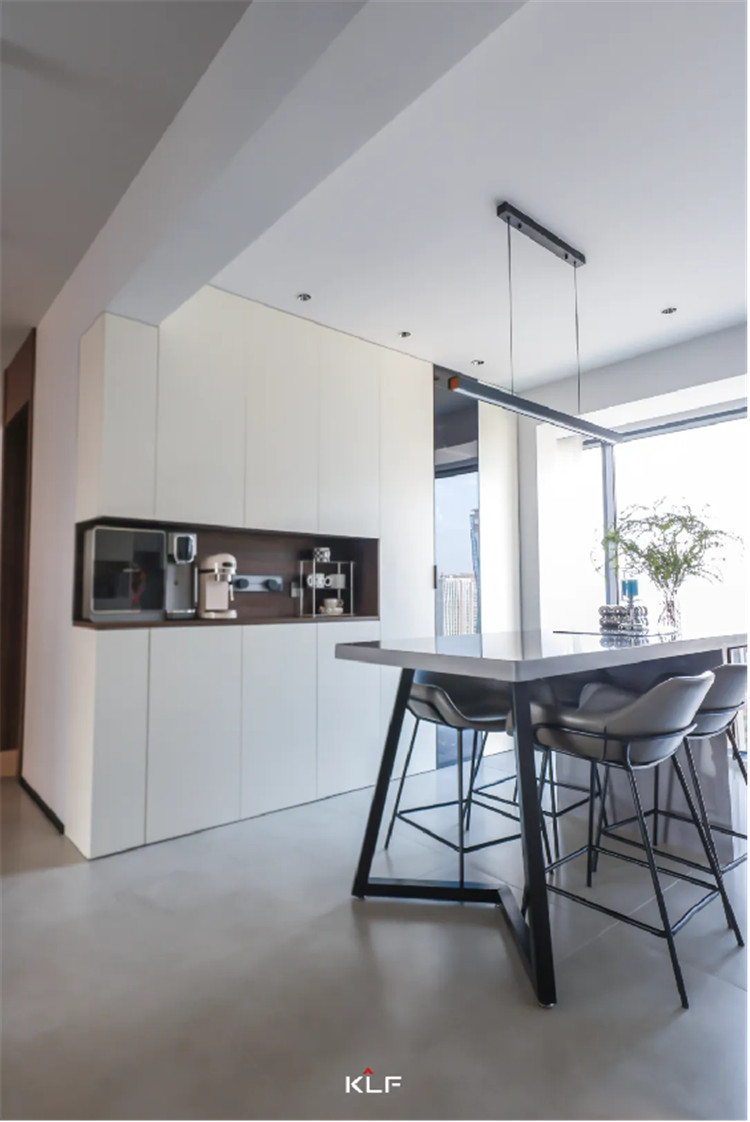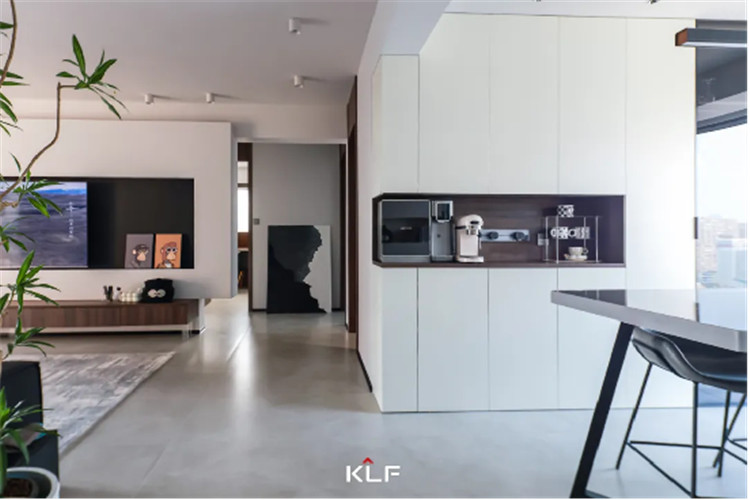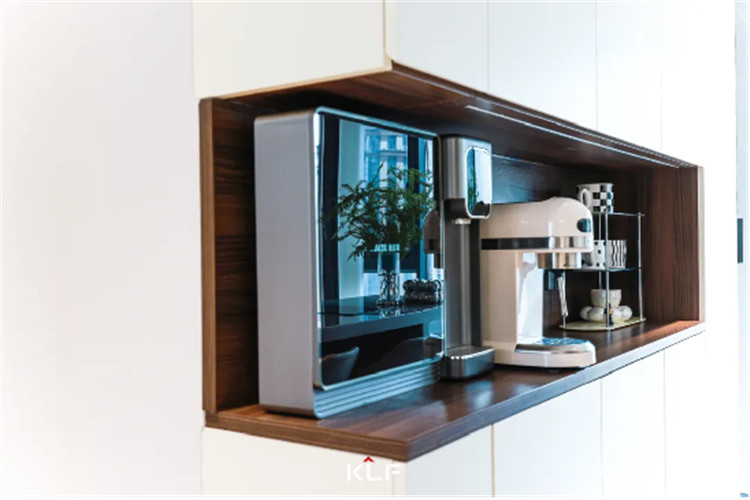 另一侧到顶餐边柜聯系开馆显得型,以瑞典白+烟熏橡木开发舒适地方。私人订制箱体都可以只不过只不过埋没好任何事物电线电路的同时都可以只不过安装家电制造行业留有置物沿海地区,为宜要重视营生品格的家里人。