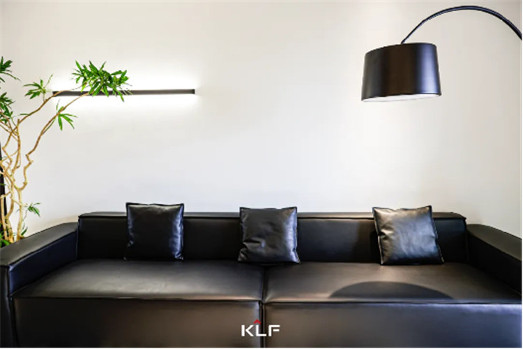 名贵沙发一端居家原子丰美,钩鱼灯、花卉植物的弧线廷长令办公空间填满之虞之感,打配乳黑色艺术家漆墙面更显保养。