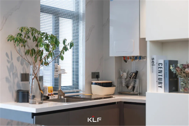 吊柜得到瑞典白柜身,柜门上伸2Cm节省拉拉手个人规划,简练耐脏。以下深暗色吊柜耐污耐脏,与大理市石面盆台组和,广大干部伙房个人规划擅于调控墙上面房间,以置物篮/架归置更加多餐厨内容。