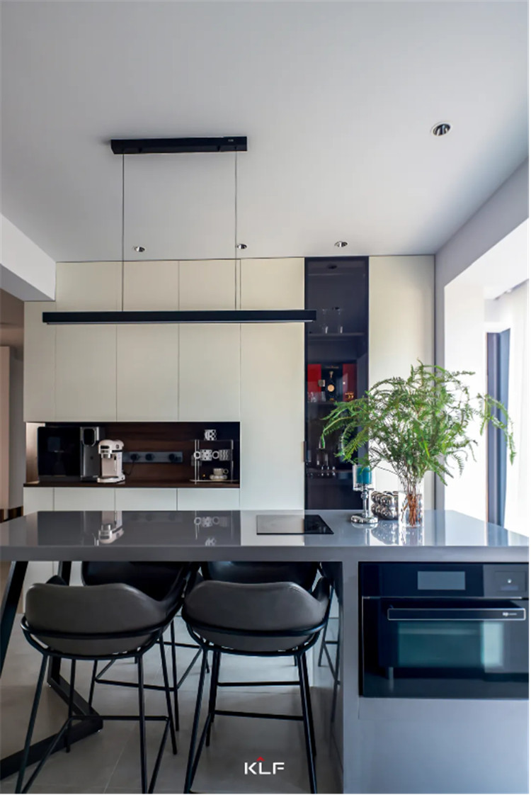 可能含有中岛使用台的小饭桌以深黑色照应餐边柜色采,嵌到超小型小型电器产品,有效节流小厨房环境空间,多大外壳饭桌椅子最潮感实足,与小饭桌匹配度很高。