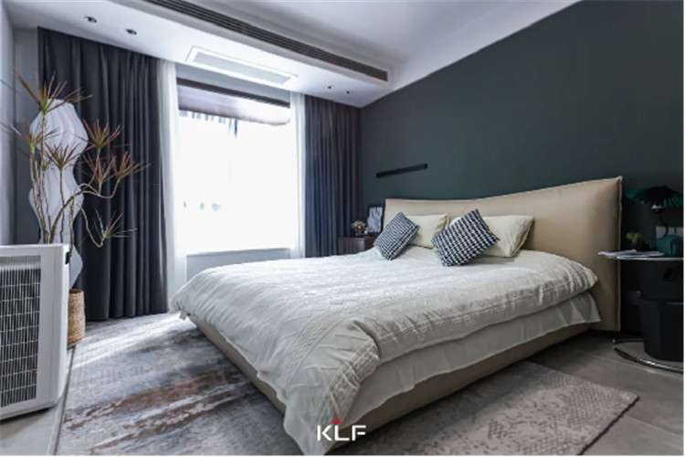 在卧室地方中不设施超量的想法,简洁的整理型橱柜+柔嫩双人床大便发黑这种房子的龙套,布鲁灰橱柜朴素浓艳,整理方能倒是100分。