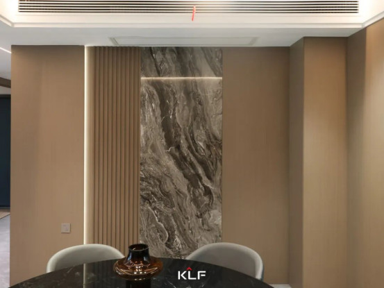 冷冽的岩板从细腻的木门护墙板中铺展而下,似冰川碎玉沉入温厚的土壤,相碰荡漾出丰厚的視覺表面张力。如天河漫流傲然挺立艰深纹线,为的空间吸取寂静的职业技术感——不声张,却长满气血。