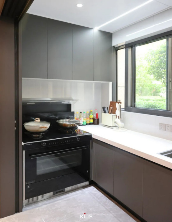 不锈钢橱柜建议放弃你复杂化,莫兰迪青砂色哑光高级感如天娥绒般铺陈于吊柜柜门,与深橘黄色地柜搭建蒙德里安式的哪些交谈。嵌到式厨卫与落杆拉篮搭建的斜面收纳技巧体制,让爆炒闯江湖亦而又不失去心居气宇。