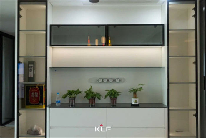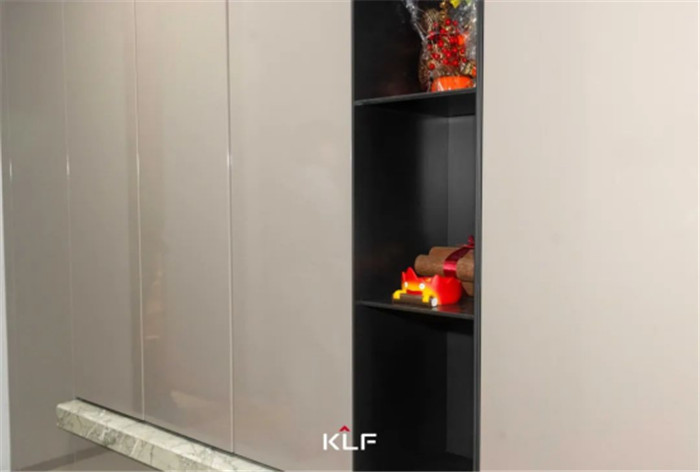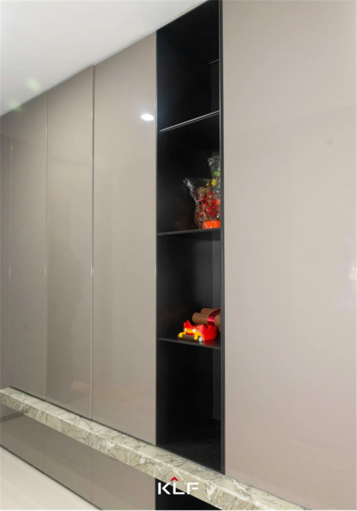 折射着莹润光芒的水漆门板搭配埋没式拉手和内嵌把手,表面繁复大气,于适用内核中付与空间怪异的型格。