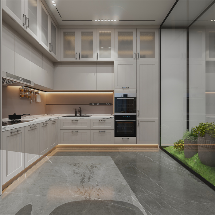 ⼀个舒适的餐厅酒店厨房要能给大家烧饭炒菜时给我们心情舒畅感,家门口的餐厅酒店厨房是的反应⽣活⽓息的地⽅。U型的简练的流线想法和清楚的作用辩别别让 全部烹调变成凌乱无章。 无把⼿的整体橱柜长宽高简练,雅观电离层,之前髦的的气质满⾜传统青年⼈的艺术鉴赏还要。