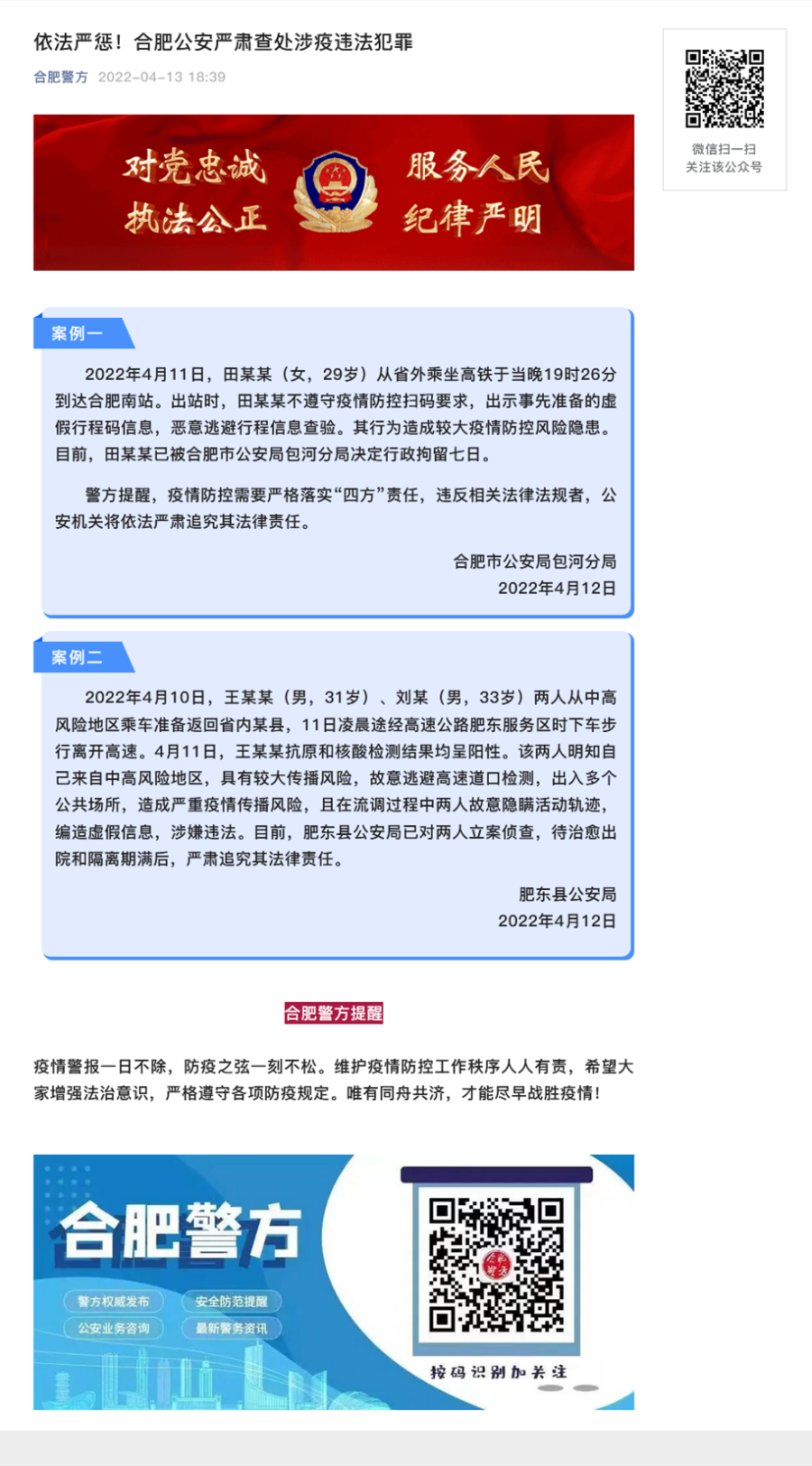 依法重办!合肥公安严厉查处涉疫守法犯法