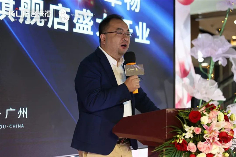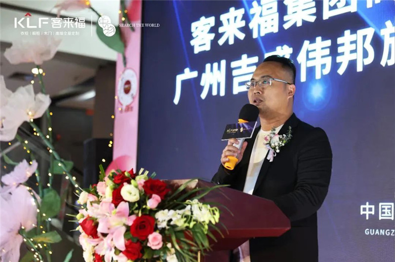 吉盛伟邦总司理徐晋烈表演:敢谢施工现场mata的撑持,相信客来福社团高定加盟品牌 ·革物·广州市吉盛伟邦旗靓店店的停业整顿将或迎高个人品德种子发芽。